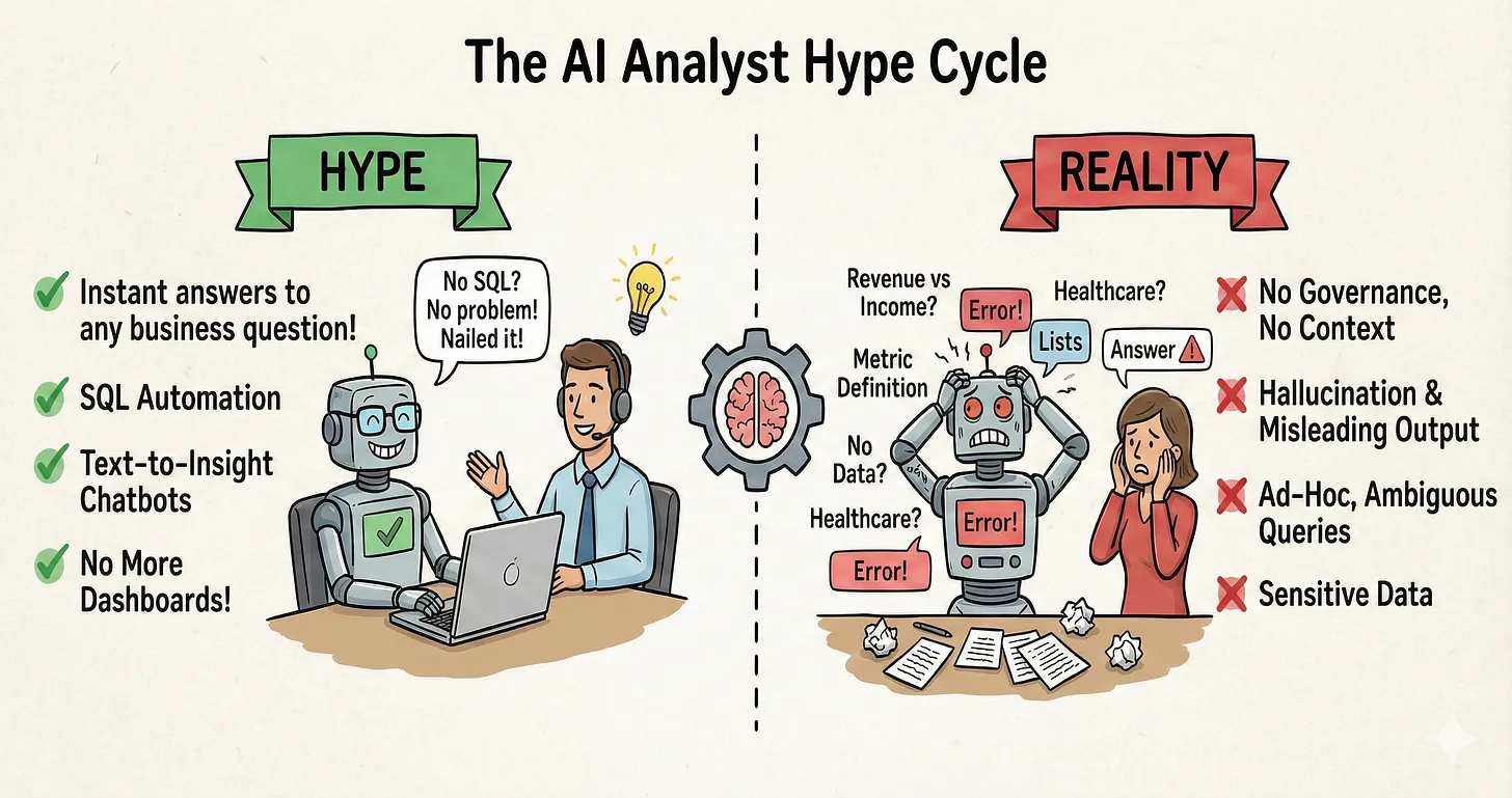 ‘Ad-hoc 천국: 왜 지루한 요청이 팀의 자산이 되는가’에서도 비슷한 내용을 다루고 있습니다. 비록 애드혹 분석은 일회성 분석이고, 급하게 요청이 들어오는 경우가 많기 때문에 분석가로서는 지양하고 싶은 건이지만, 오히려 품질이 높은 애드혹 분석을 하나하나 잘 쌓는다면 AI와 효과를 낼 수 있을 것이라는 내용입니다. 분석 결과를 정리하면서 AI가 비즈니스 로직이나 예외 케이스와 같은 도메인 지식을 쌓을 수도 있을 것이고요. |
